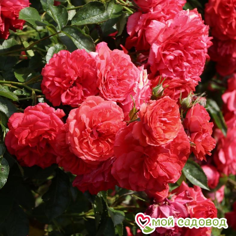 Куст во время пика цветения становиться внешне похож на яркое облако розового цвета, побеги почти полностью покрыты большими цветами. Последние в сезоне бутоны приобретают более темный цвет, что подчеркивает их красоту.